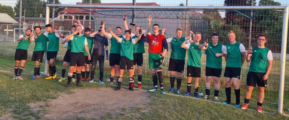 Dabei sah es vor dem letzten Spieltag noch gar nicht danach aus, da der ärgste Widersacher, der TSV Hagenburg vor dem letzten Spieltag noch mit einem Punkt Vorsprung die Tabelle der Kreisliga anführte. Nach einem 4:1 Pflichtsieg gegen den TSV Algesdorf am letzten Spieltag, saß man bereits gemütlich auf dem Sportwochenende in Fischbeck zusammen um eine gute Saison abzuschließen, als nach langem Warten irgendwann das Ergebnis des zeitgleich spielenden TSV Hagenburg auf „Fussball.de“ erschien. Die Freude kannte keine Grenzen, als dort stand, dass der TSV Hagenburg lediglich 1:1 gegen die JSG Liekwegen/Obernkirchen II gespielt hat. Deswegen geht an dieser Stelle ebenfalls ein Dankeschön an die aufopferungsvoll kämpfenden Liekweger heraus. Plötzlich wurde zeitgleich auch klar, dass die Saison noch gar nicht beendet war, denn nun stand noch ein Aufstiegsspiel um den Bezirk gegen den Kreismeister aus Nienburg an.